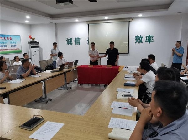 6月16日下午13:30分,公司李总及各部门负责人参加了开幕仪式,同时在旗帜上进行签字,李总带领项目组进行了授旗宣誓,并与盘柜科技战略进行了签约仪式。