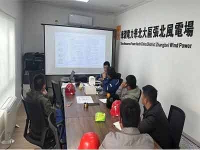 华润电力风电场领导召开现场会沟通工作精神,会议纪要及后期工作安排进度,现场施工人员 安排,确保工作顺利进行。