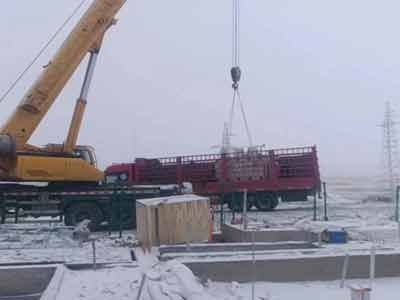 大雪封山也阻挡不了工程人的脚步(设备到货吊装倒运卸车放置设备基础就位),提前制定吊装方案设备到达现场后,派专人引导车辆到达堆放区域。卸车时,吊车作业区域内严禁人员穿越或逗留卸车应有安 全人员监护,工作开展前对所有施工人员宣读工作票,进行技术交底,天气寒冷温度较低,做好防护措施,确认危险源。