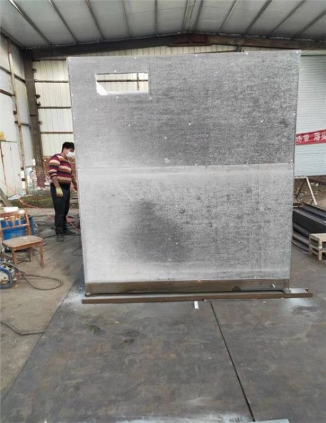 采用轻钢水泥压力板工艺在根本上解决了箱变外壳过于笨重的缺点。壳体采用预装式水泥压力板根据尺寸进行切割,中间加入轻钢龙骨进行支撑,模具造型,整体重量为传统箱变壳体重量的三分之二,较大的解决了箱变壳体重量问题。由于此种工艺还是采用水泥制作,传统水泥箱变壳体的优点没有丧失,比如夏季隔热效果和防凝露效果没有降低,而且水泥压力板中掺杂了强度较高、耐腐蚀能力较强的高耐碱性玻璃纤维,不导电、防雷好等特点。